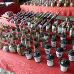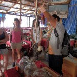 The white temple was quite interesting. In order to go inside, you had to take off your shoes. This is standard practice for Buddhist temples in Thailand. Inside, it was rather odd. There was a golden Buddha, but there wasn’t much else inside as far as religious objects, furniture, etc. Instead, the walls were painted orange, and there were all kinds of recent pop culture images painted. I’m not quite sure what the meaning of that was, but it was not what you would typically see inside a Buddhist temple. After the temple, we went on to the area where Thailand, Loas, and Myanmar (Burma) meet, where they share a river. On the ride over, our tour guide told us about the different home-made liquors that the people here make from various creatures (you’ll see below). One of them is apparently a tiger penis. After seeing this up close, I’m still not certain that that is what it really is (I hope it’s not). Anyway, while explaining the supposed benefits (libido enhancement) of drinking the liquor made with this “stuff,” he proceeded to explain to us that he drank some of this recently, and that was how he wound up with an injured wrist. (In case anyone needs time to process that, he was making a masturbation joke.). I thought that was fantastic, as I have never heard any tour guide even come close to joking like that.