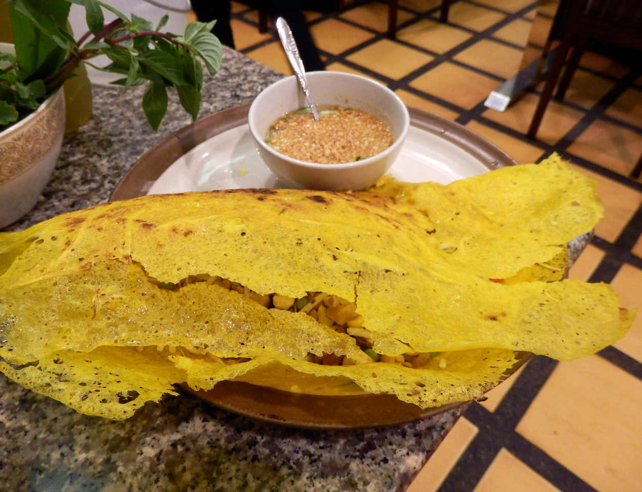 That evening, I met up with someone I had just met for dinner in the old city. I hadn’t spent much time in the old city because of all the day-long activities and trips, so I thought this would be a good time to go. I wanted to go to a good Thai place, but as we drove near it, we saw that it had apparently closed. I was asked if I wanted to go for Vietnamese, and I said “sure.” The place we went to was really quite good, and the food arrived looking very exotic.