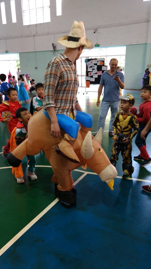 Nothing says “Halloween” like a flea market held in the gym, which is operated by fellow students trying to sell and bargain their stuff. As I said, buying things is definitely something that is ingrained in modern Chinese society as part of celebrating anything western. Don’t think that you can swindle these kids either; they come out of the womb knowing how to hustle.