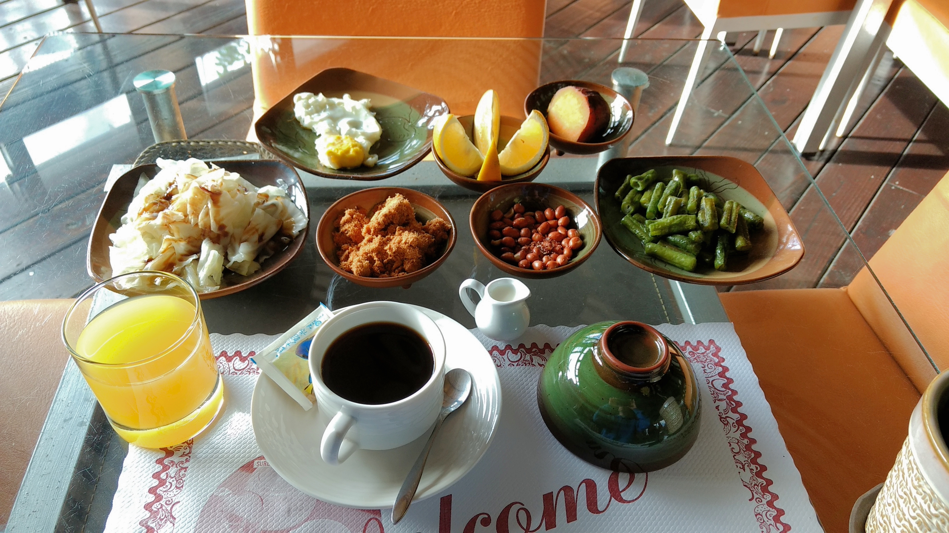 Once I arrived, I was pleased to see how nice the place looked (even in gloomy weather). There was plenty of plant life all over, as well as views of the distant mountains scraping through the fog and clouds. I was soon shown to my room, but I was told that I needed to take off my shoes (standard etiquette here). I was glad to see that the room did indeed look like the photos that I had seen on booking.com.