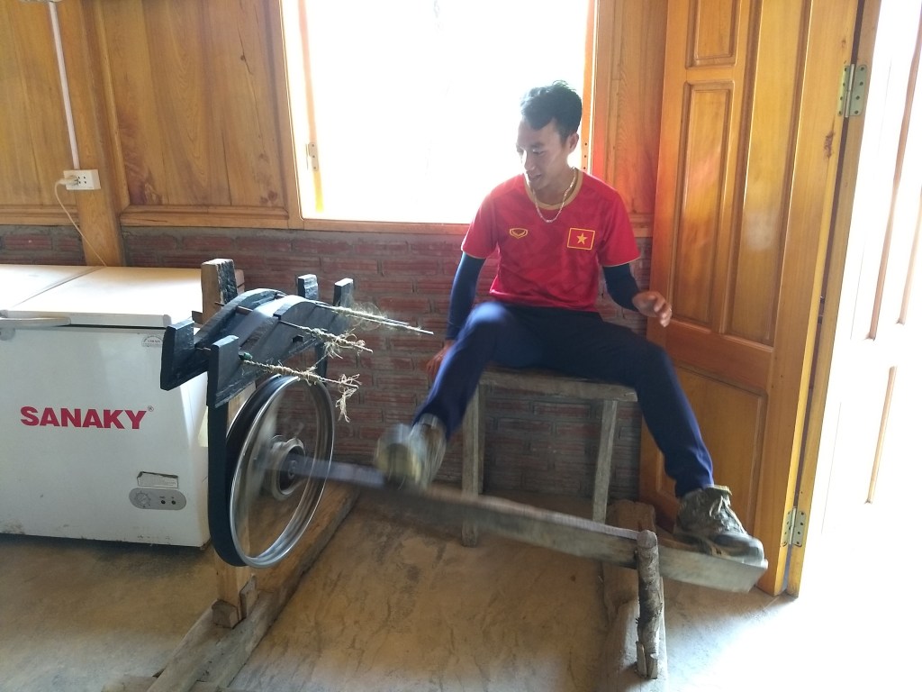 Su took me around the room and told me about the machines used to turn the hemp into usable string. It’s nice to see that old manual methods can still be useful. He even showed me a traditional instrument that is played whenever a family member dies. Wait, I just realized how that sounded. What I meant was that they don’t play this instrument for entertainment but rather for whenever there is a funeral. He also showed me an old-fashioned flour grinder that is used to grind corn.