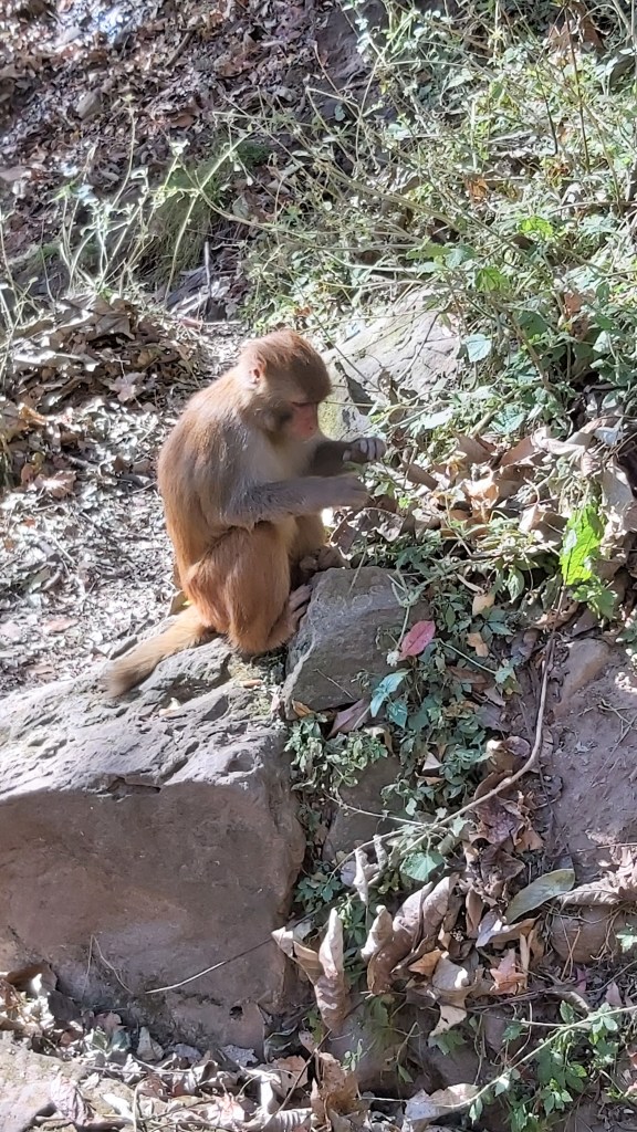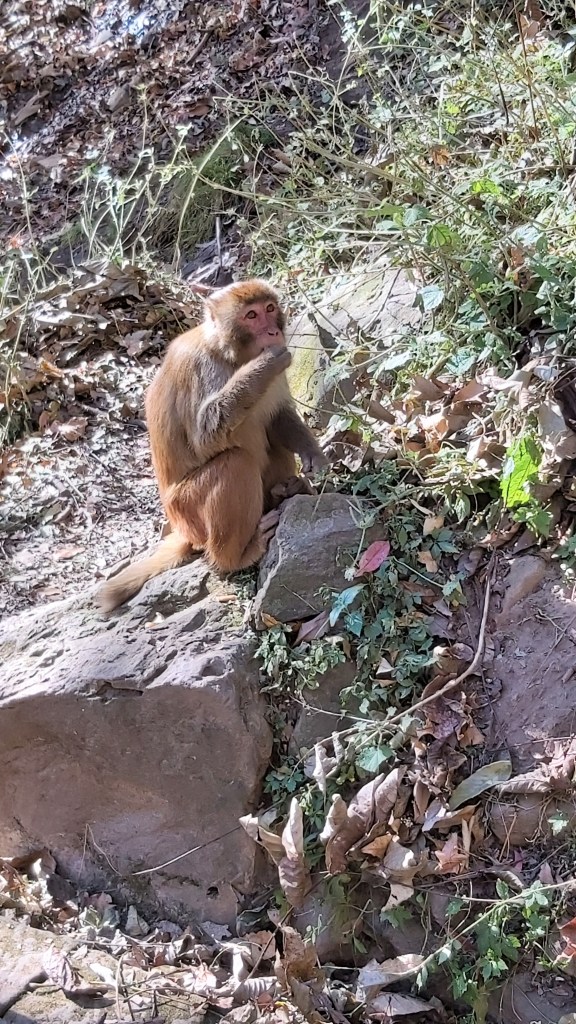 The first site I visited was a small national park, which housed some temples, grottoes, and hiking trails. Ultimately, I felt underwhelmed by this area. However, I still managed to get some photos. While walking up and down the many steps (of course) of the first temple and grotto, I came across a monkey. I was told that there were some monkeys in this area, and I could see fresh poop on the steps, but I wasn’t sure if I would actually encounter any since it seemed so quiet. This monkey was clearly used to being close to people, as it didn’t seem to care that I was close.