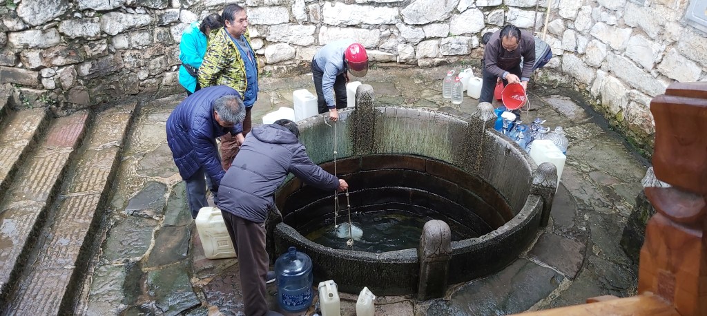 We then headed over to the well area, where we saw locals busily fetching their pails of water. The well water is believed to be pristine, which is part of what makes the local tofu so good. Above the well is a small drink shop selling tea and other drinks made from this well water.