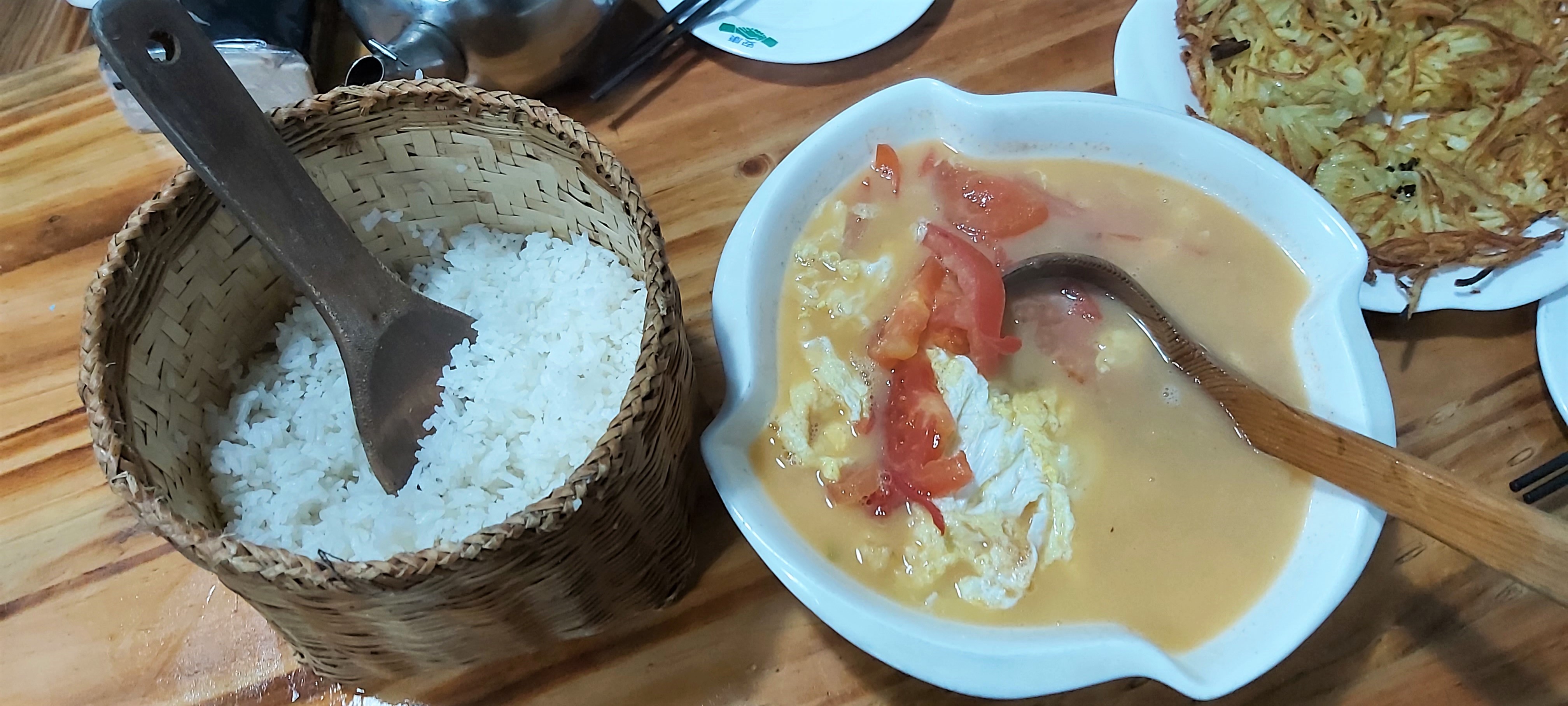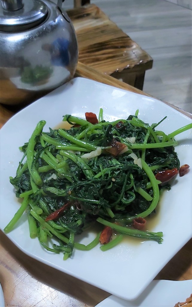 A few hours went by, and the rain and clouds still hadn’t ceased. So, we decided to have a late lunch and wait for the weather to get better, as forecasted. The potato pancake made its second appearance, along with a sweet and sour pork dish and a green soup with eggs.