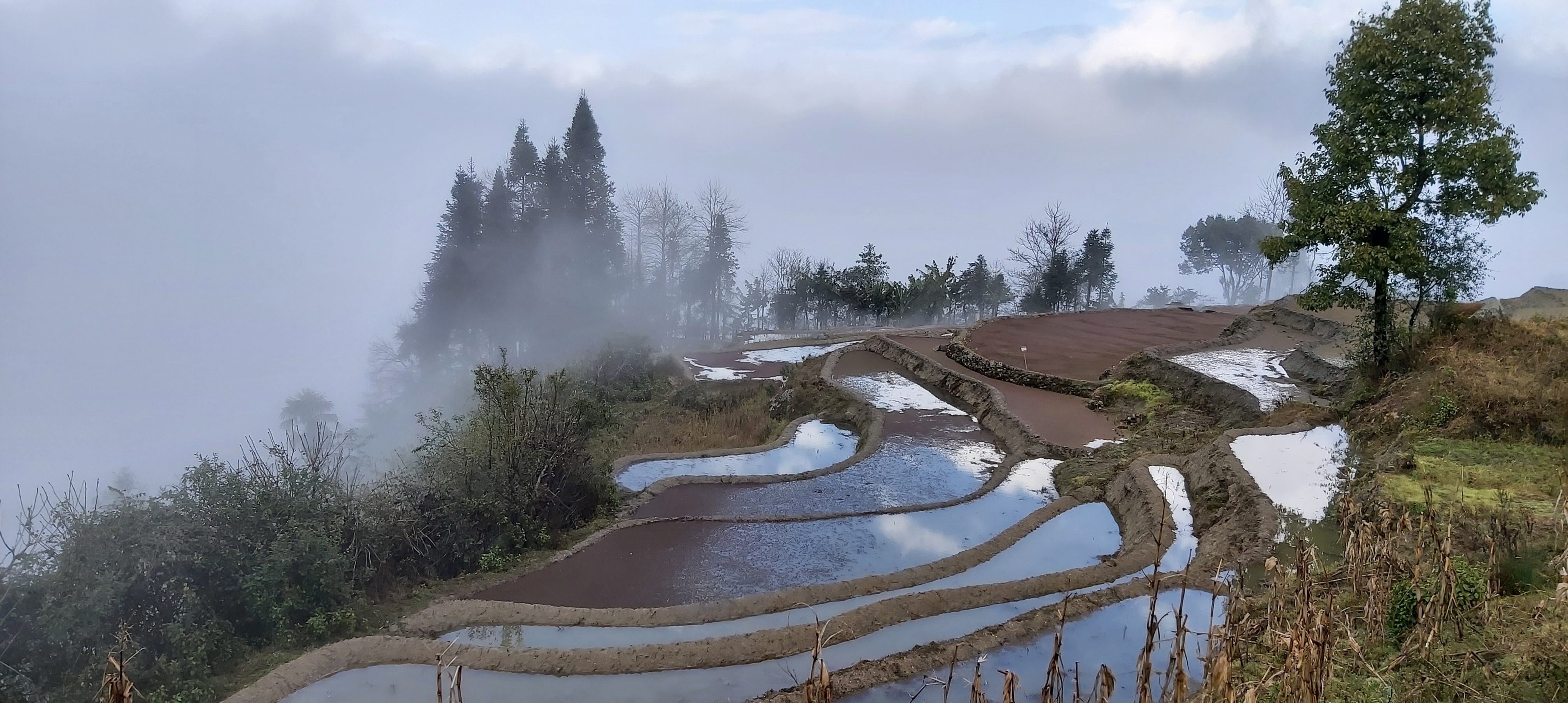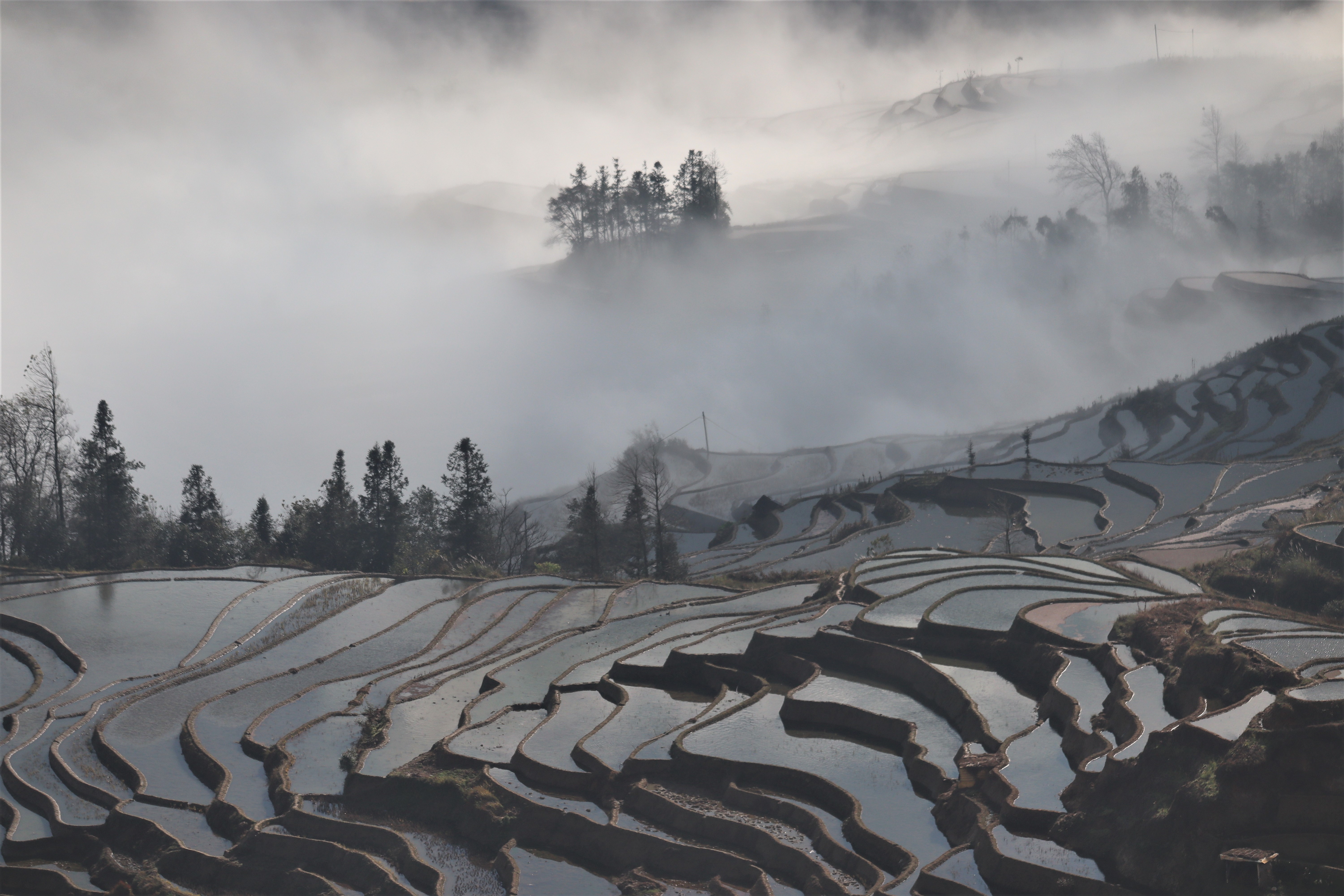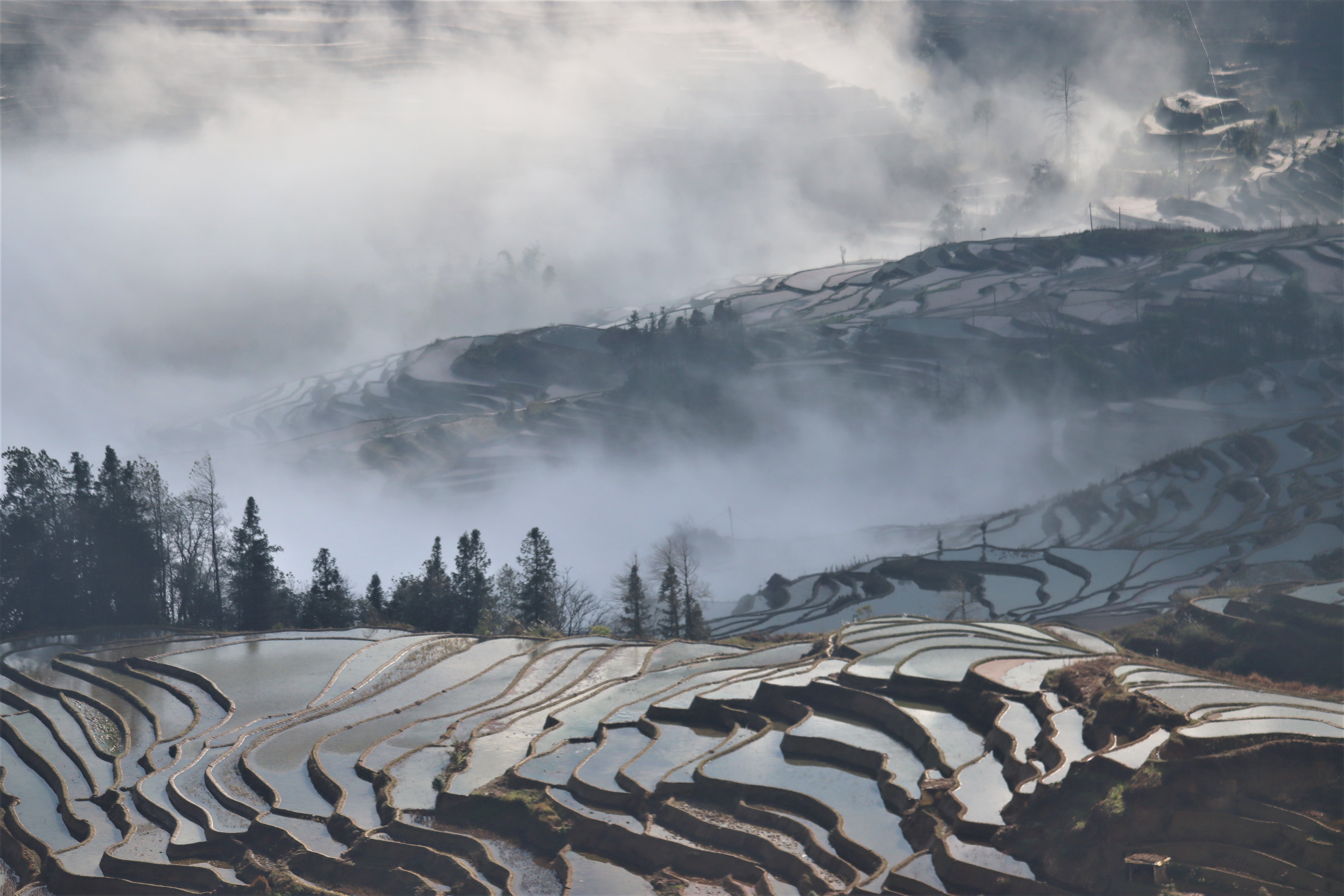 I was told that winter in Yunnan is part of the dry season. However, being up high in the mountainous region, this did not stop us from encountering lots of rolling mist, clouds, and light rain, making photographing a difficult task. The rolling clouds and mist proved to be quite unpredictable, so we had to make quick judgment calls. Given the weather conditions, I think we decided correctly.