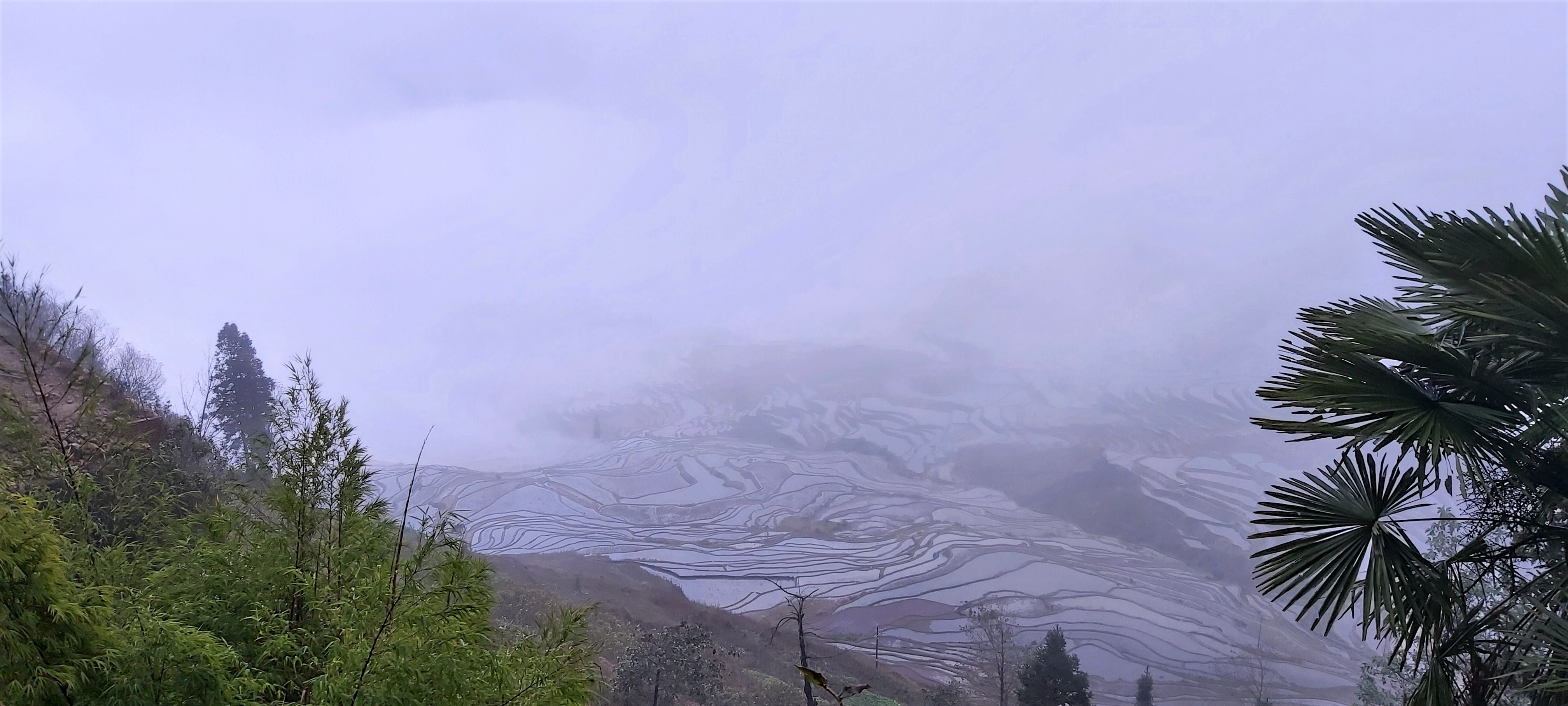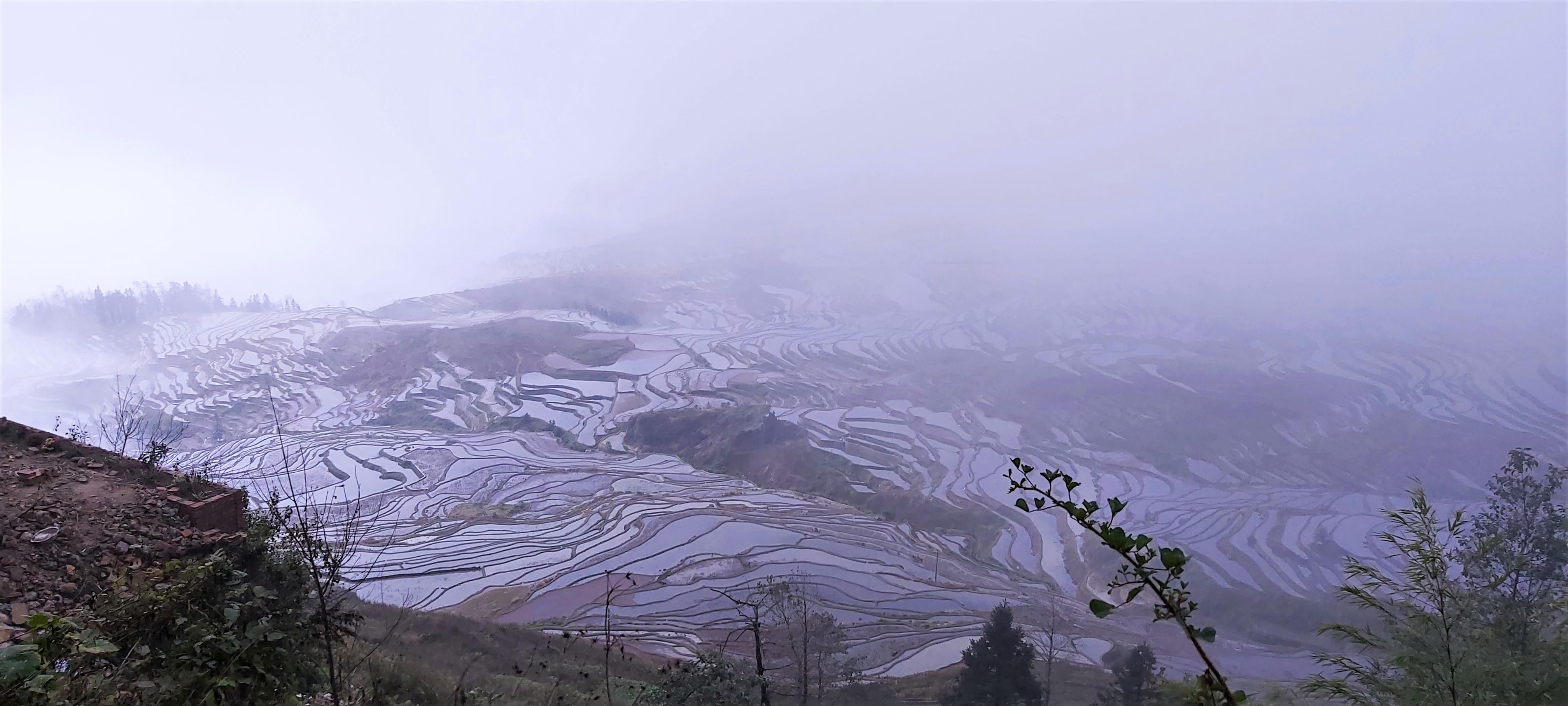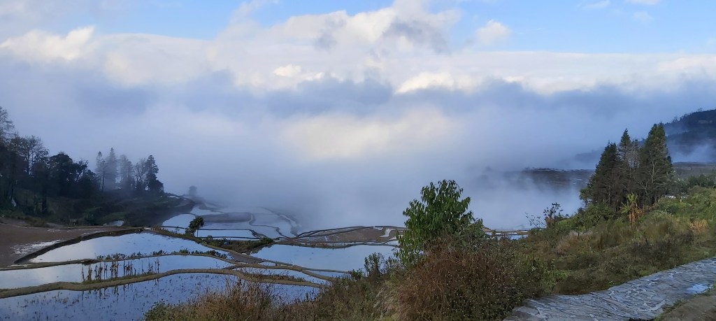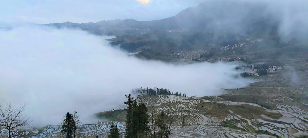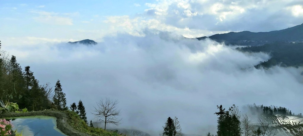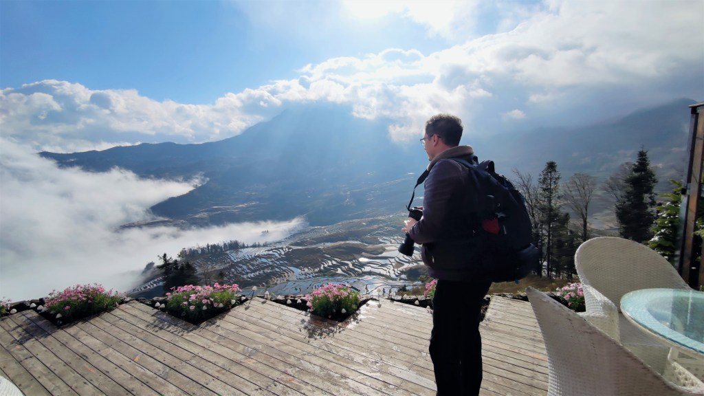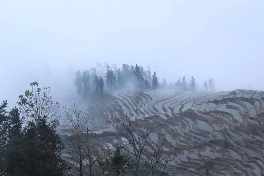 That morning, all of the guests had hoped to rise early to see a glorious sunrise. What we actually saw was quite the opposite. The clouds and mist were so heavy that when looking out of the windows, there were no terraces in existence. In fact, it was so thick that nothing existed. It reminded me of my time at Zhangjiajie (also known as the “Avatar Mountains”) a few years earlier and what a disappointing trip that was for the same reason.