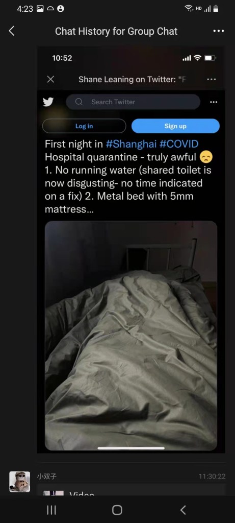 Someone here in Shanghai who tested positive for COVID and was forced to go to a hospital for quarantine posted about his experience. He noted that it was ultimately quite uncomfortable and wondered why he wasn’t just placed in a quarantine hotel with what he described as mild symptoms (such as a sore throat) and only being given some traditional Chinese medicine.