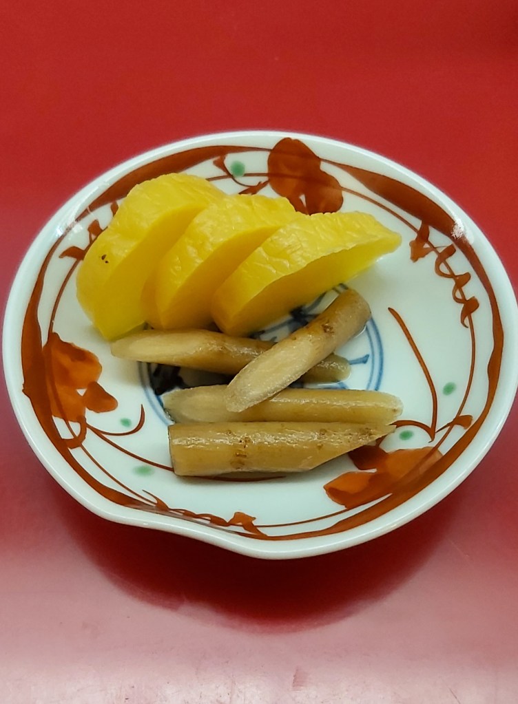 That evening, I decided to eat at my hotel’s little mom-and-pop restaurant, which was located somewhere within the hotel’s labyrinth of hallways and stairs. When I did find it, I saw that no one else was there. I had just assumed that more people would be interested in eating there, but I was wrong. I poked my head inside, and the husband and wife were watching TV. When they saw me, they seemed eager to have me inside. It was small and narrow-looking. I ordered some gyoza (Japanese dumplings) and a ramen soup with pork. It came with some small pickled veggies. The whole meal was delicious!