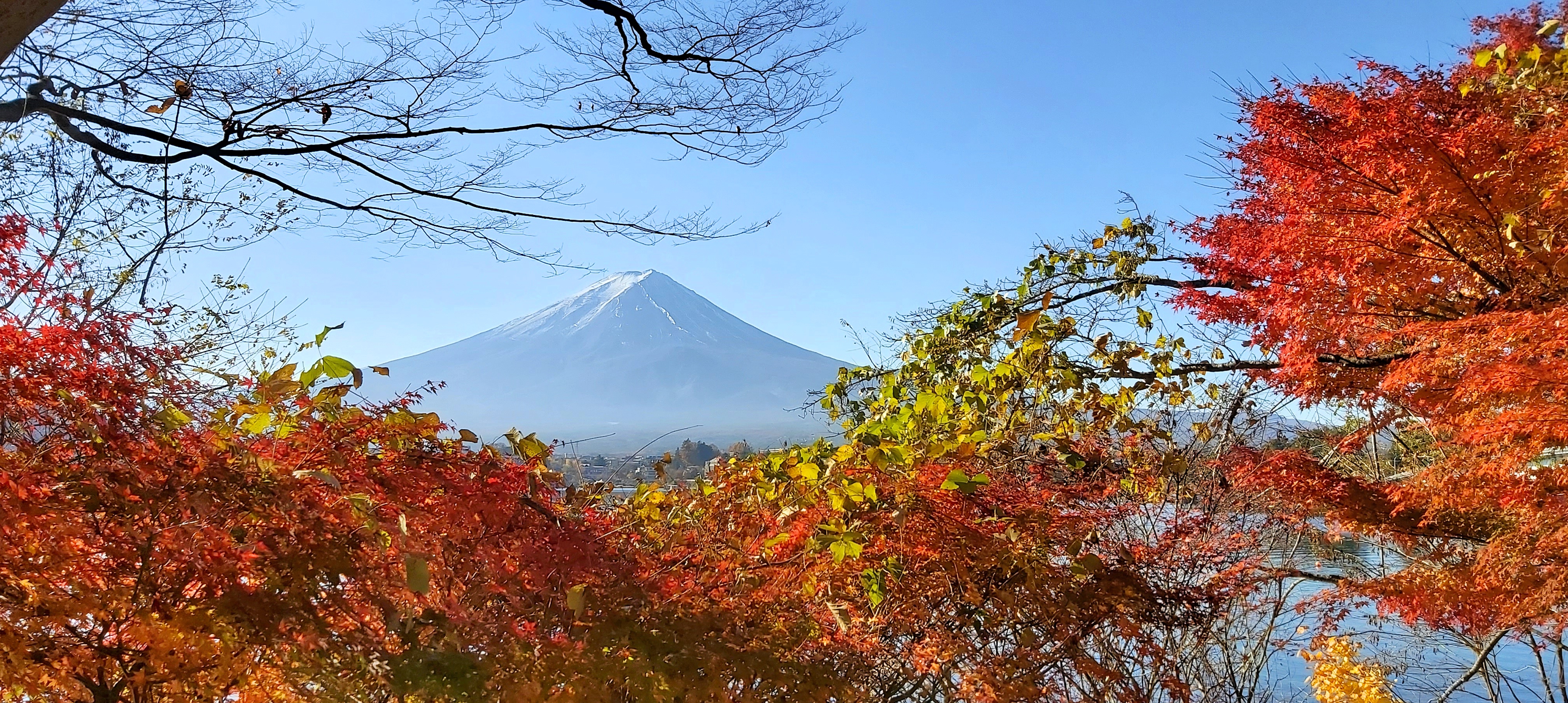 Along the way, I stopped by one of the most popular spots to take photos of the entire lakefront area. It is sometimes referred to as the “Momoji Tunnel,” and it is a small spot along the lakefront where the maple tree branches bend down to visually surround Mount Fuji when sitting under them.