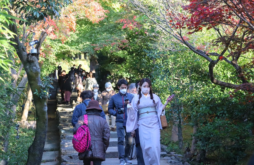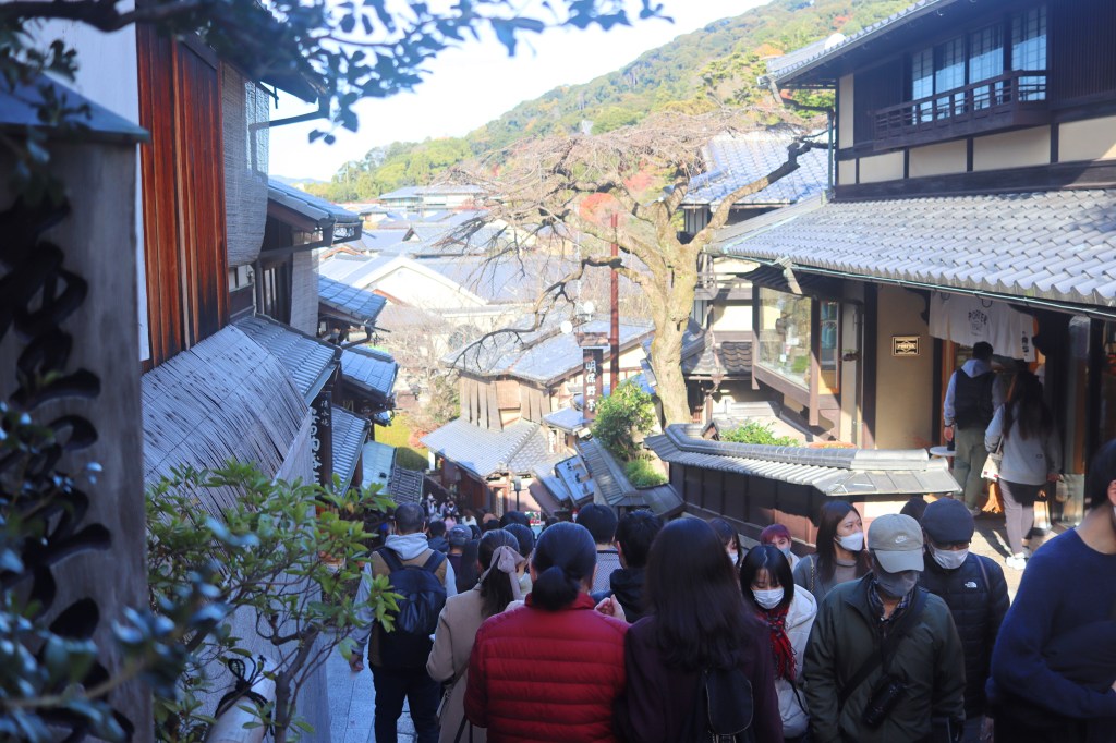Since the day was getting on and the sun was lowering, I weaved my way through the crowded street, past the tourist shops, and headed straight up to the temple. I felt rushed to explore the temple grounds, so I focused mainly on the trees and surrounding hills and paths.