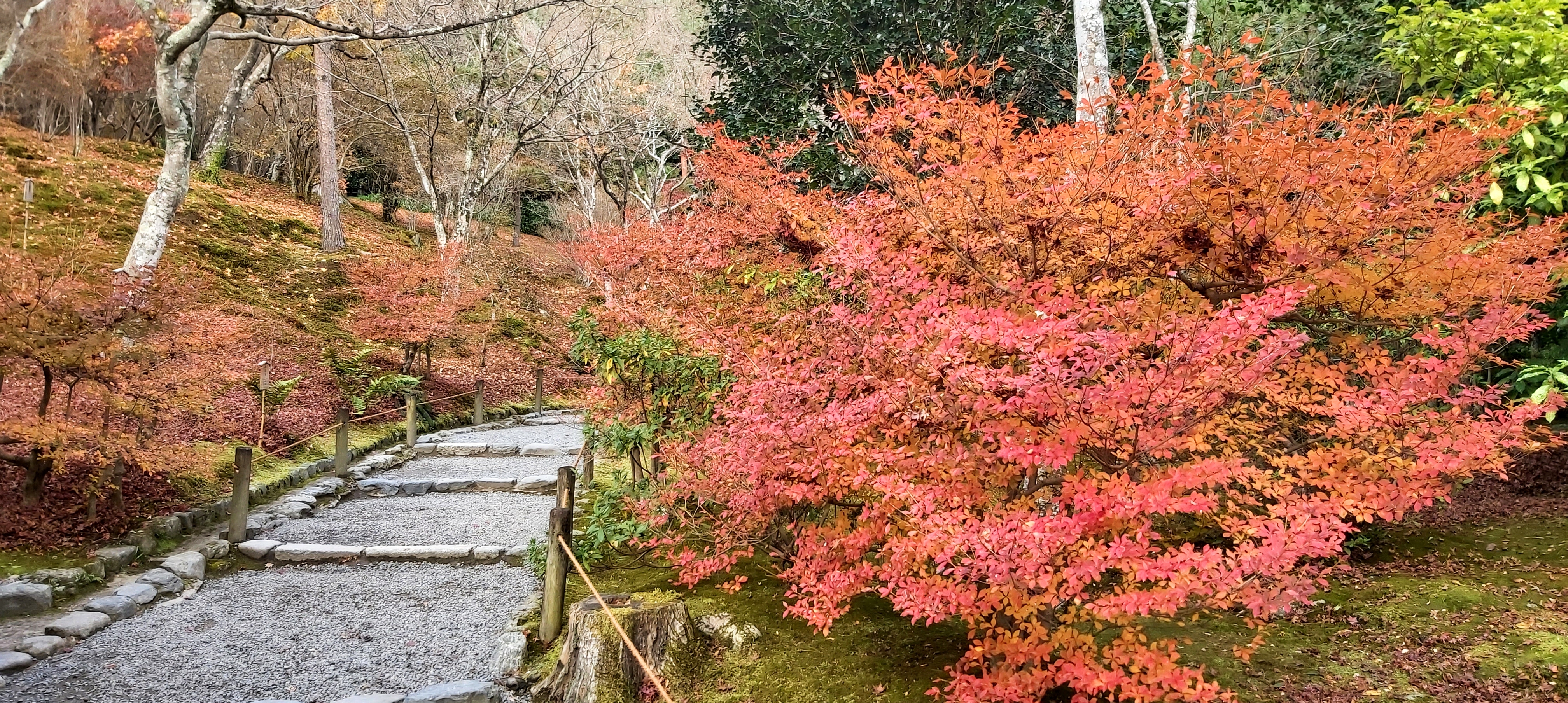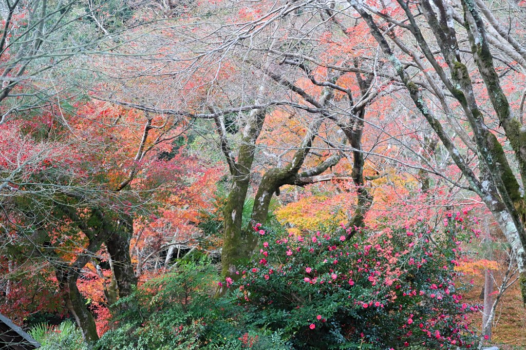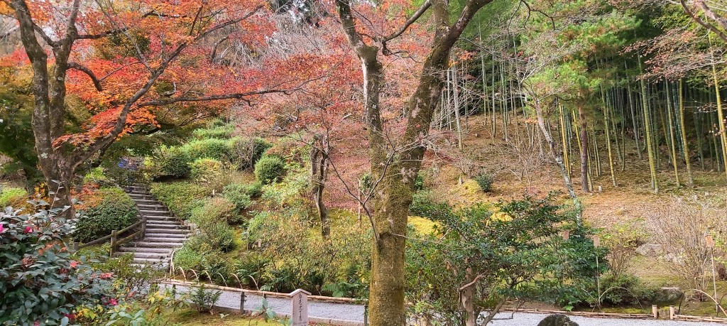 Jojakkoji Temple was founded in 1596. It’s surrounded by lovely maple trees and moss, as well as some bamboo-forested areas. Before I officially entered the grounds, I felt good about ending my trip at this site after seeing the colors and the surrounding forest area, which gave it a more secluded and quiet feel. When you walk up the crisscrossing paths, you can also get a view of Kyoto.
